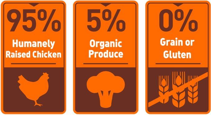 Purpose Chicken & Veggie Dog Food formula is made from humanely-raised, free-range chicken and organic fruits. An enticing and nutritious dinner for your dog to enjoy.