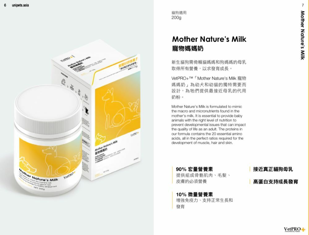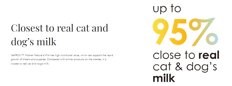 VetPRO+™ "Mother Nature's Milk" is designed for the unique needs of puppies and kittens, providing them with the closest milk substitute to breast milk.