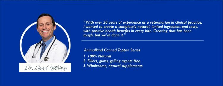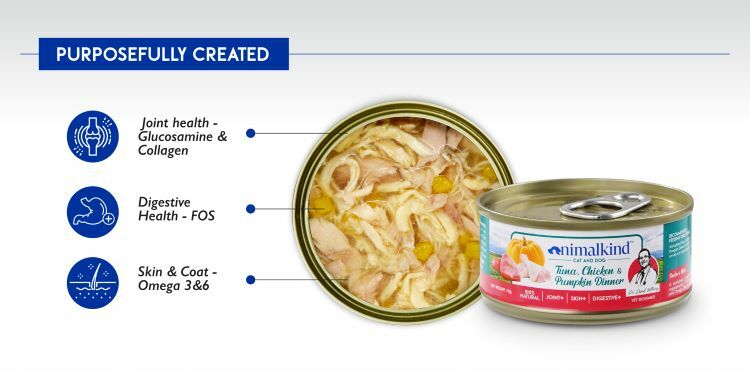 Animalkind Canned food makes mealtimes special, providing a nutritional boost with the natural health benefits of glucosamine, FOS, omega 3, and collagen. OHH! and it's also delicious.