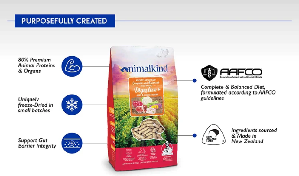 Designed by Dr. David Gething and his team of animal nutritonists, Animalkind Freeze-Dried Raw Food is delicately freeze-dried to retain the natural vitamins, minerals, and nutrients.