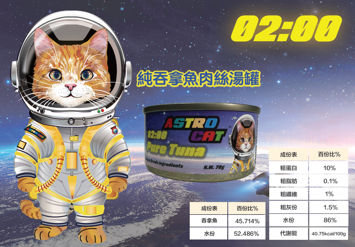 吞拿魚 45.714%、水份 52.486%、改性木薯澱粉、瓜爾膠、魚萃取物