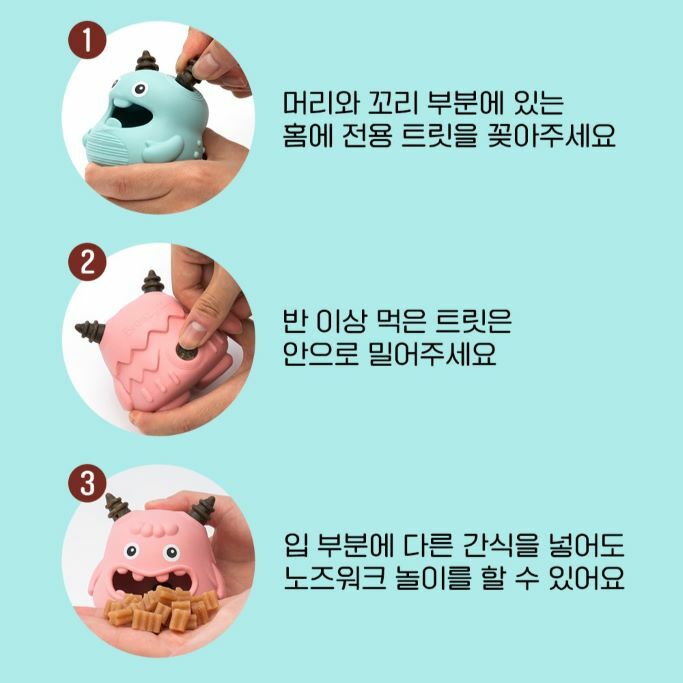 - 可在玩具的嘴中放入零食實現快樂的聞嗅遊戲