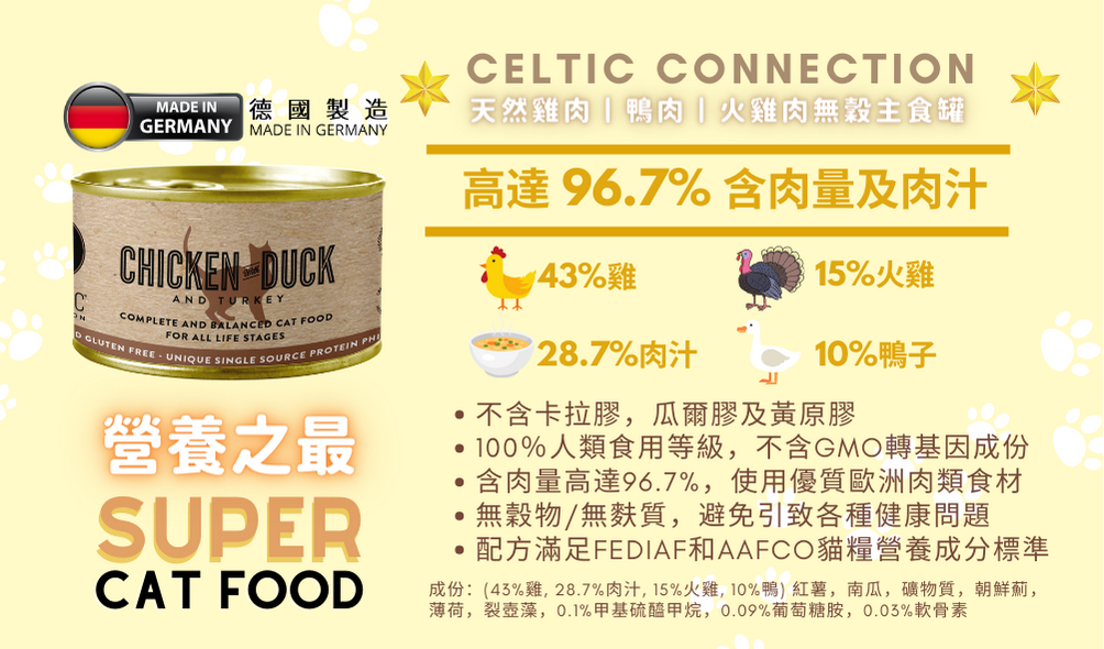指定商品,優惠:Celtic Connection 貓罐 - 12件 95折;48件或以上 9折 (可混味)