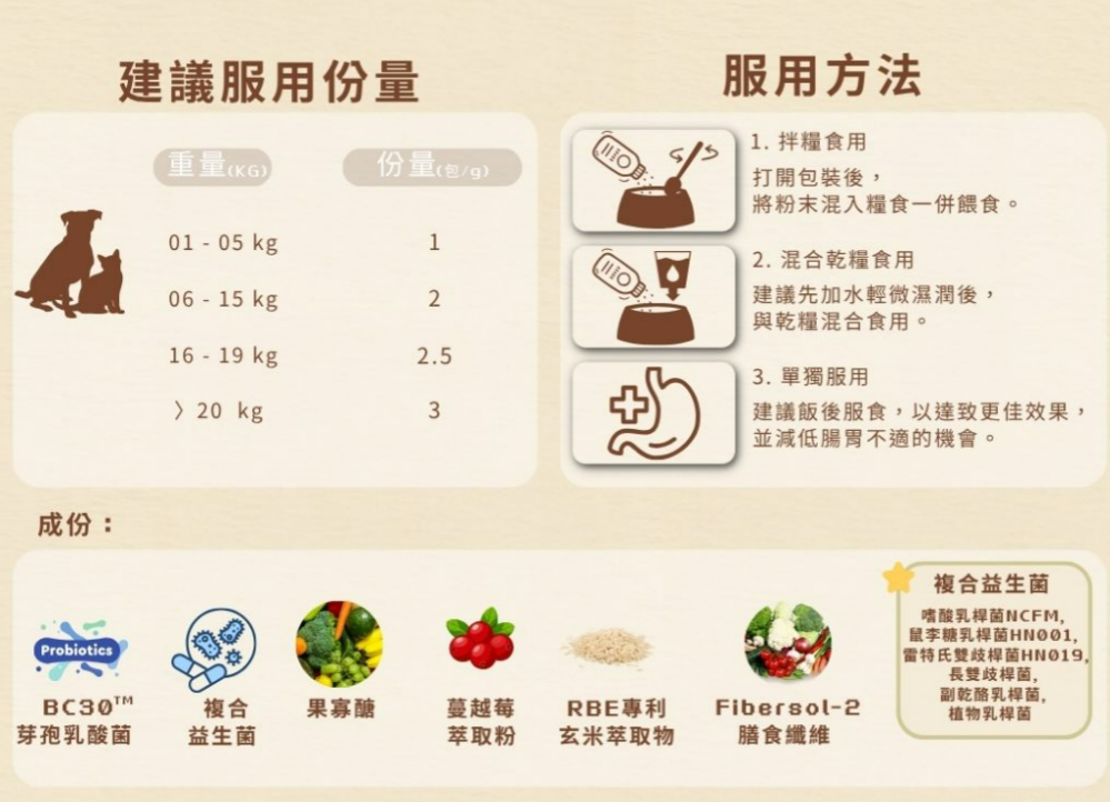 ✓ 提供超過320億益生菌,支持愛寵腸道健康