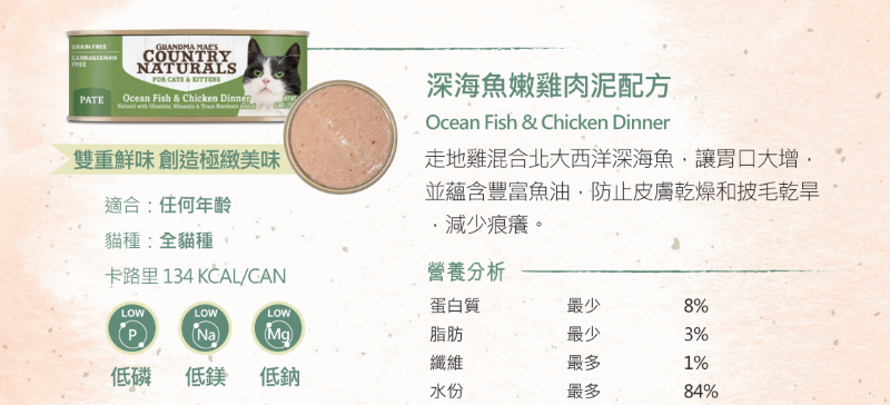 Country Naturals 貓罐頭 - 深海魚嫩雞肉泥 156g