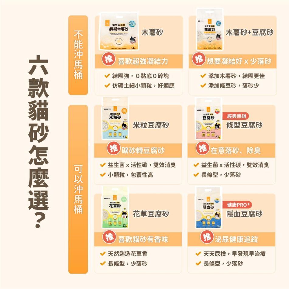• 木薯砂添加,增強貓砂凝結力,告別碎塊