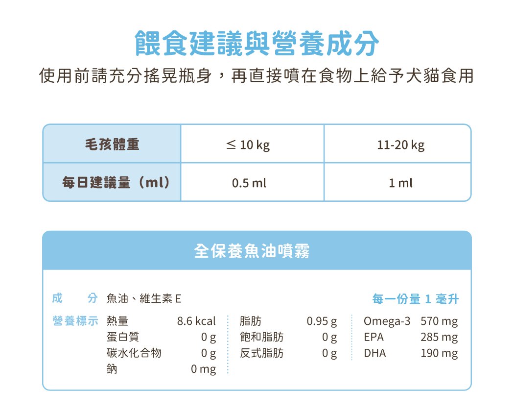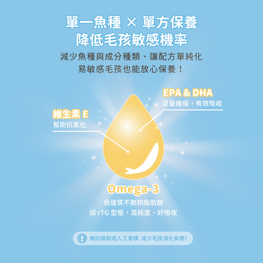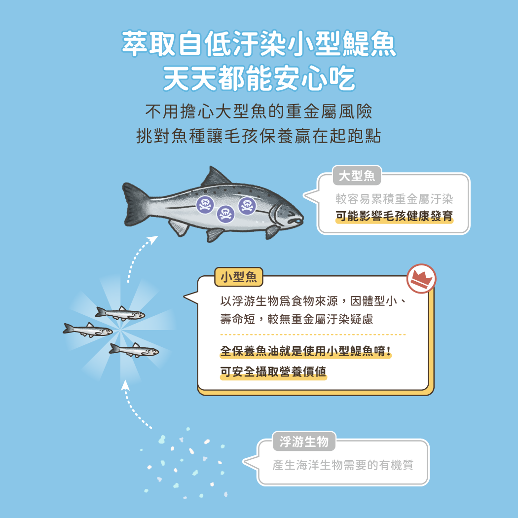 • 單方保健 X 單一小型魚種,減少毛孩過敏機率