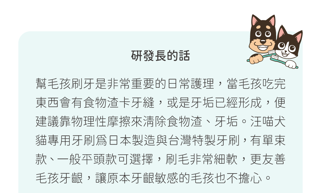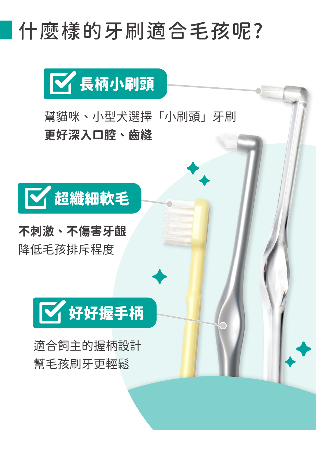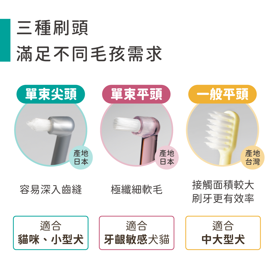 • 單束設計+細軟毛,牙齦敏感貓狗適用