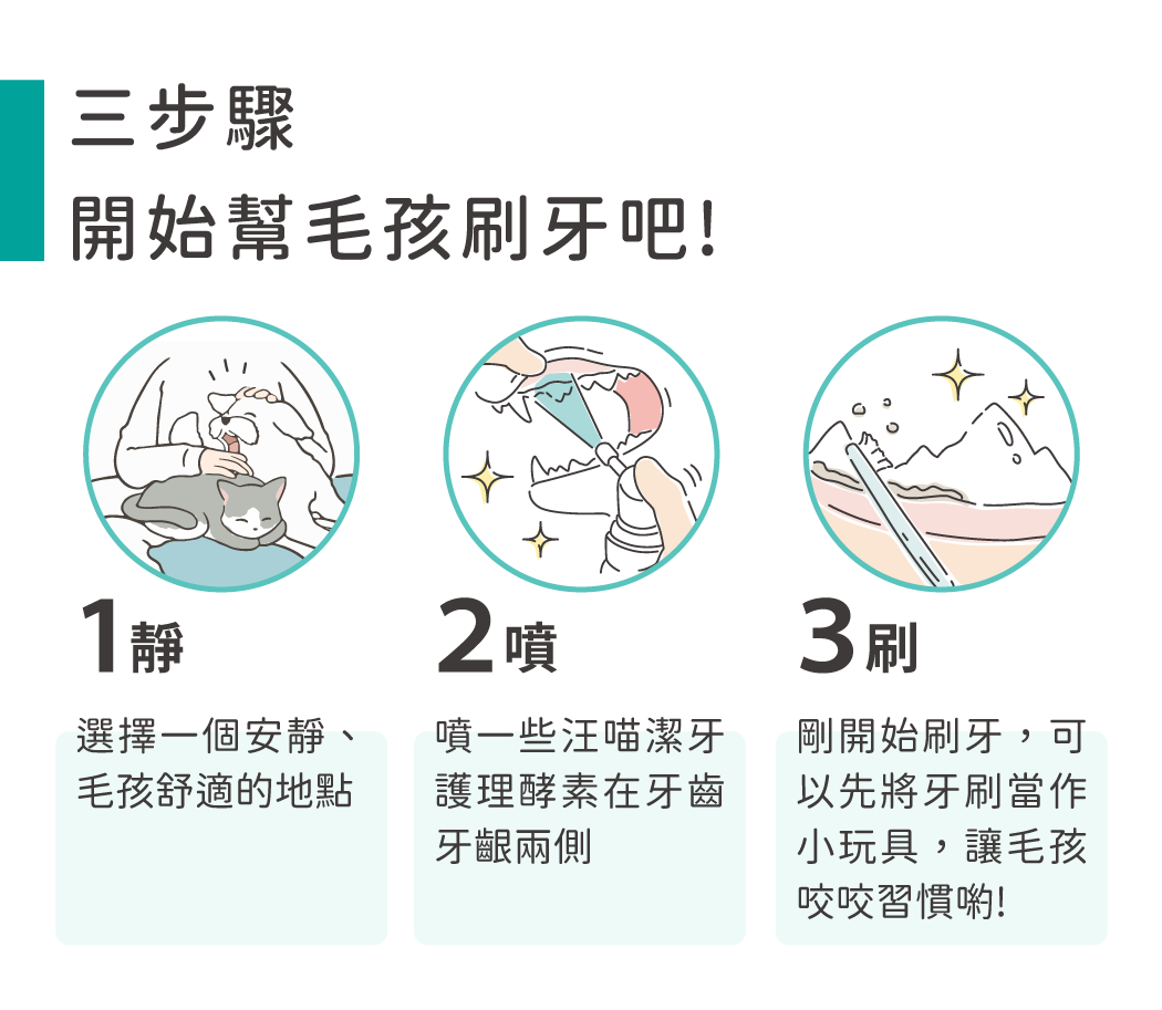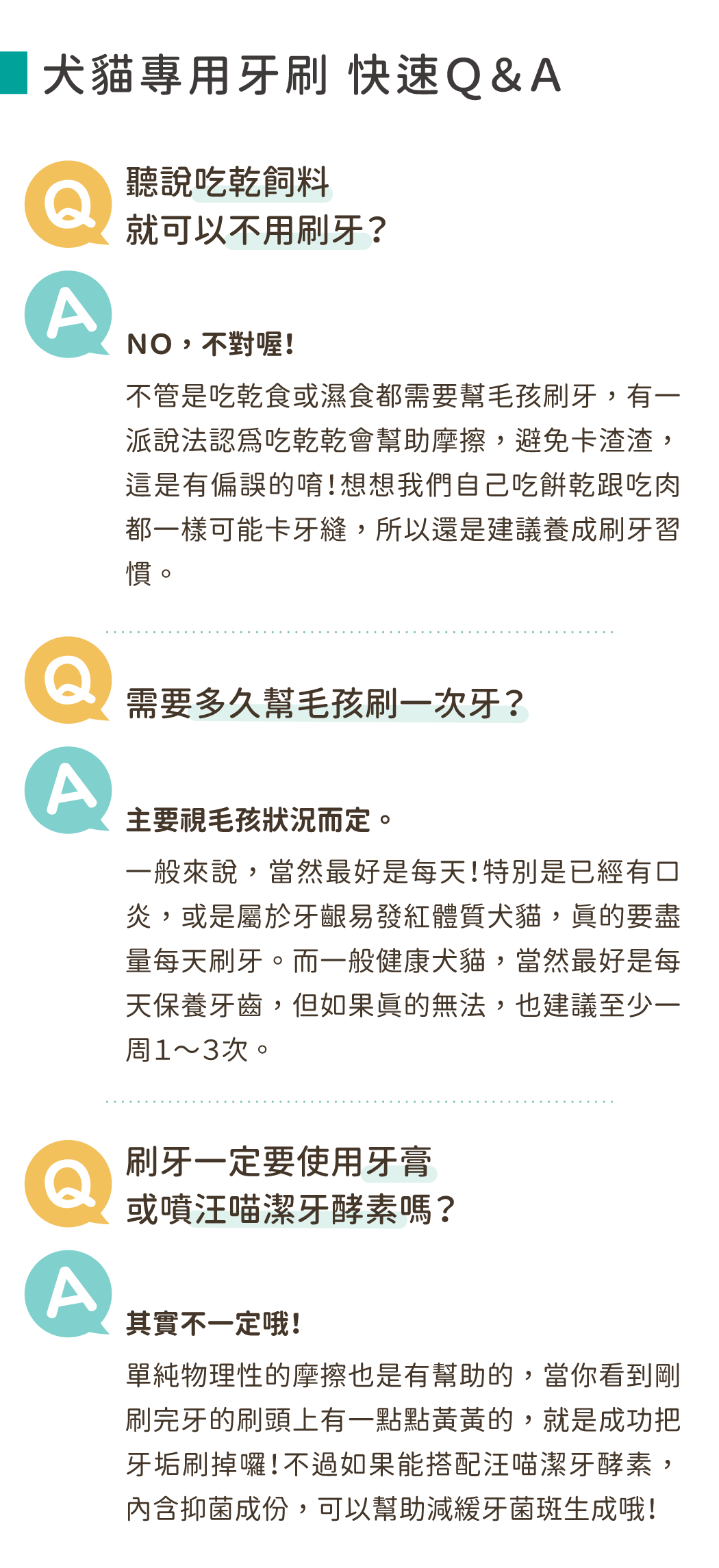※ 若刷牙過程毛孩會咬刷頭,導致刷頭變形/刷毛掉落,請定時替換牙刷或定期檢查唷!