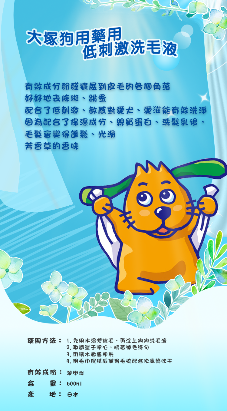 • 含有溫和植物性清潔成分,低過敏性,對嬌嫩的愛犬愛貓呵護有佳