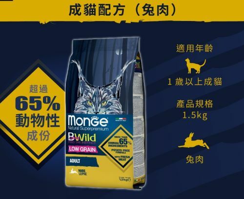 指定商品,優惠:Monge BWild 貓乾糧 - 3件或以上 85折 (可混味)