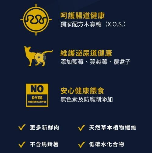 ●超過65%動物食材來源,滿足對肉類的本能需求