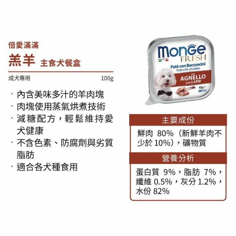 指定商品,優惠:Monge 狗餐盒 - 16件 95折;32件或以上 9折 (可混味)