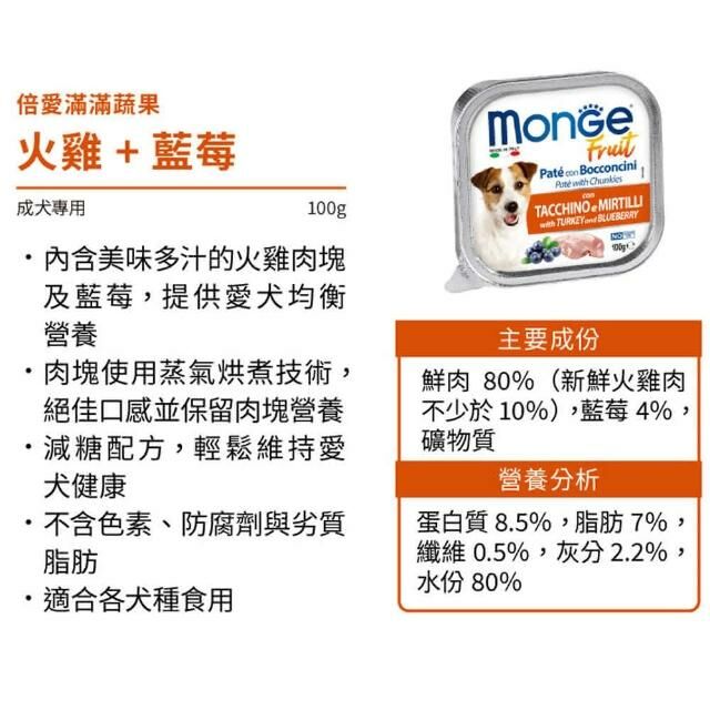指定商品,優惠:Monge 狗餐盒 - 16件 95折;32件或以上 9折 (可混味)