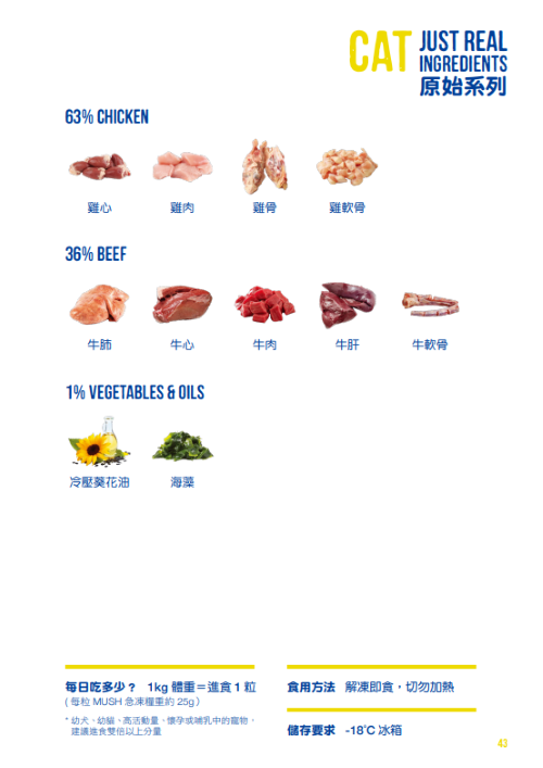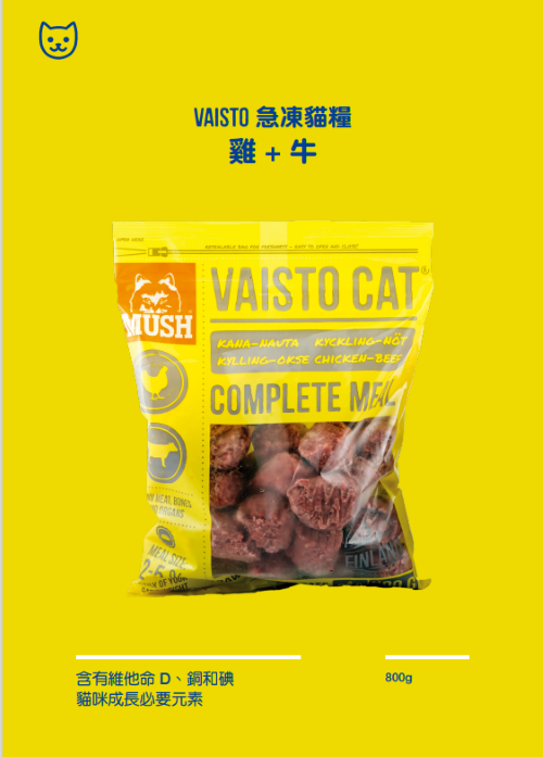 指定商品,優惠:Mush 急凍貓糧 800g - 6包 95折;12包或以上 9折 (可混)