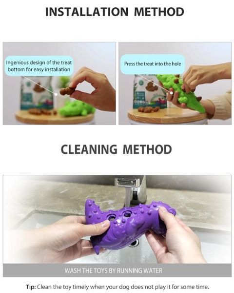 Supported by highly bite-resistant, tear-resistant rubber. Innovative design provides fun and delicious dental care. Simply put the dental treats into the toy, and the dog can enjoy the fun of grinding teeth.
