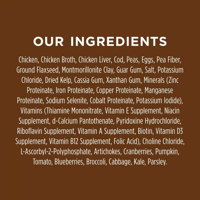 • Made without - grain, potato, corn, wheat, soy, artificial colors or preservatives