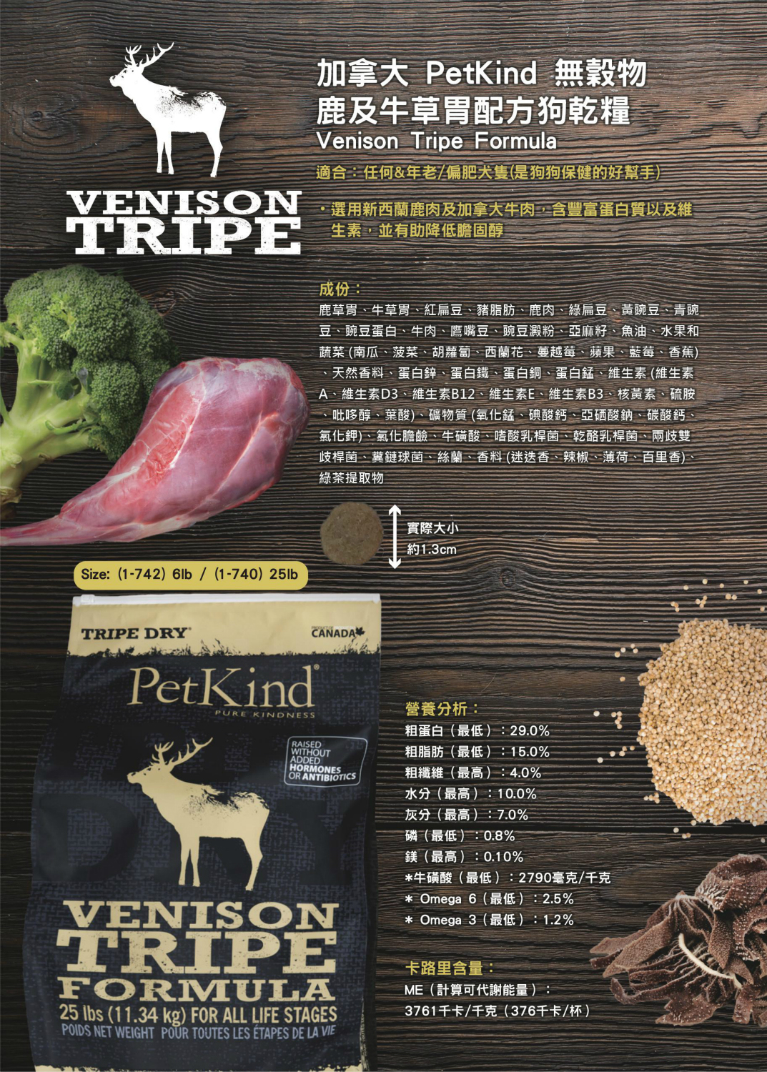 Petkind 無穀物狗乾糧 - 鹿草胃配方 6LB / 25LB