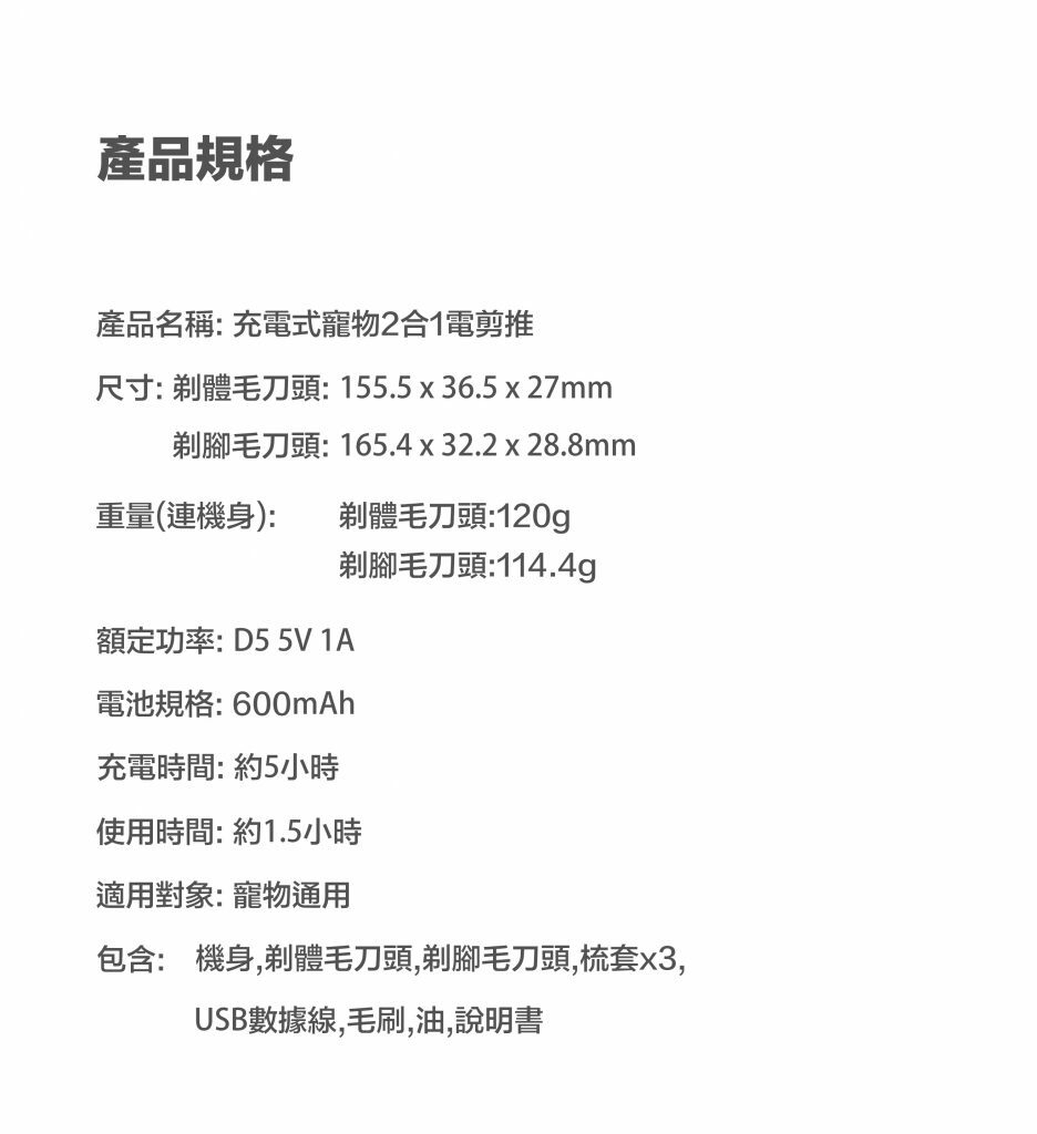 PETKIT - 充電式寵物2合1電剪推 寵物電剃毛器