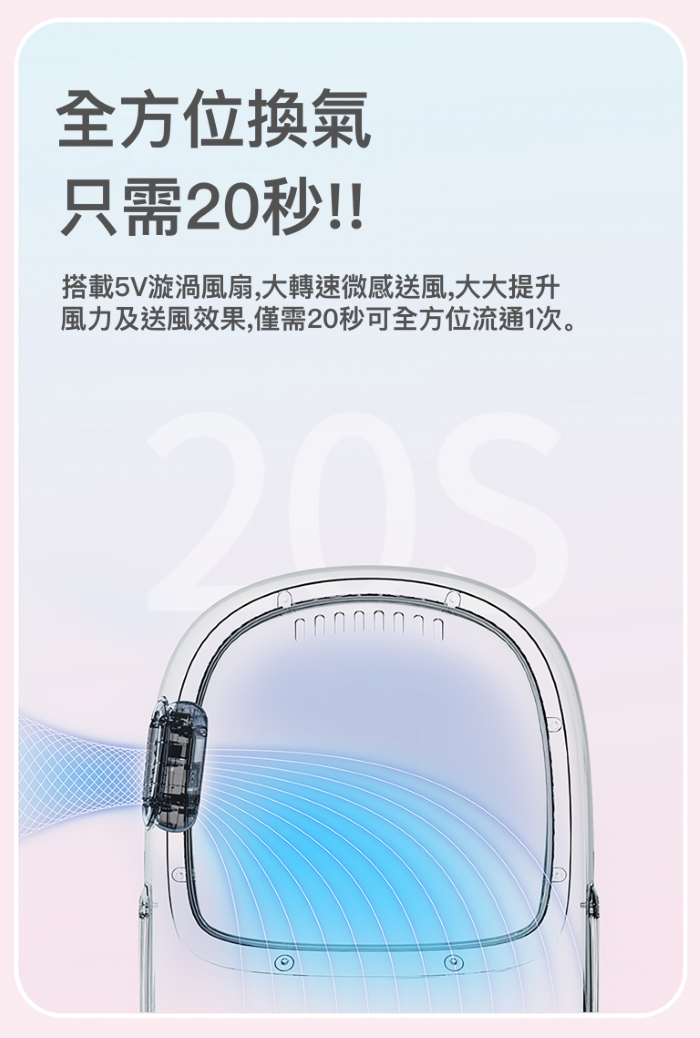 -5V渦輪風扇, 大轉速無感送風, 每20秒完全換氣一次