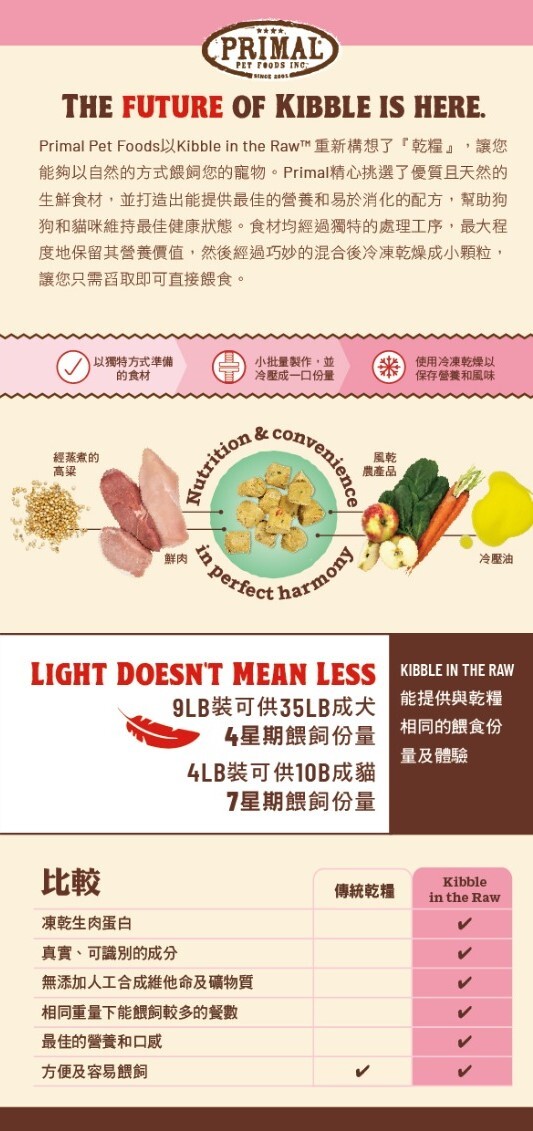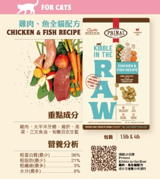 Kibble in the Raw 是 Primal 對傳統乾糧的全新詮釋,專為貓咪的天性與營養需求而設計。