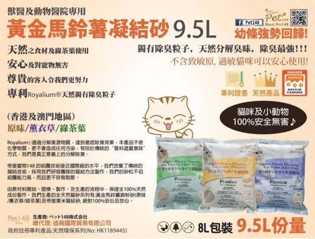 其貓砂對手術後的小動物受感染的風險最低及長久使用而不會造成腎臟問題。