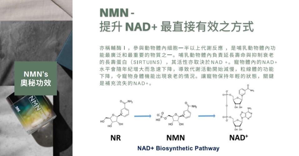 - 全港首款專為寵物研發的NMN保健品