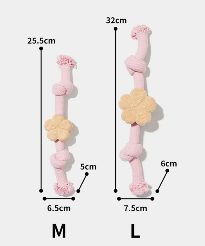 Our cherry blossom knot rope toy, crafted with durable beech wood, is available in two sizes, M and L, catering to the needs of both small and large dogs. This ensures a comfortable and enjoyable play experience for dogs of all sizes, making it a versatile toy suitable for various breeds.