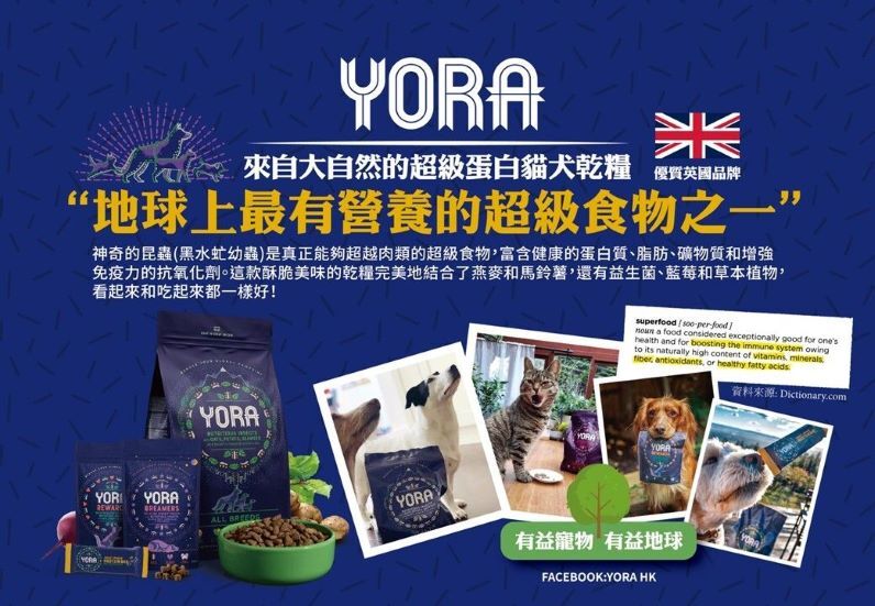 YORA所有的產品都富含優質的蟲蟲蛋白質,相對於雞肉更容易消化。